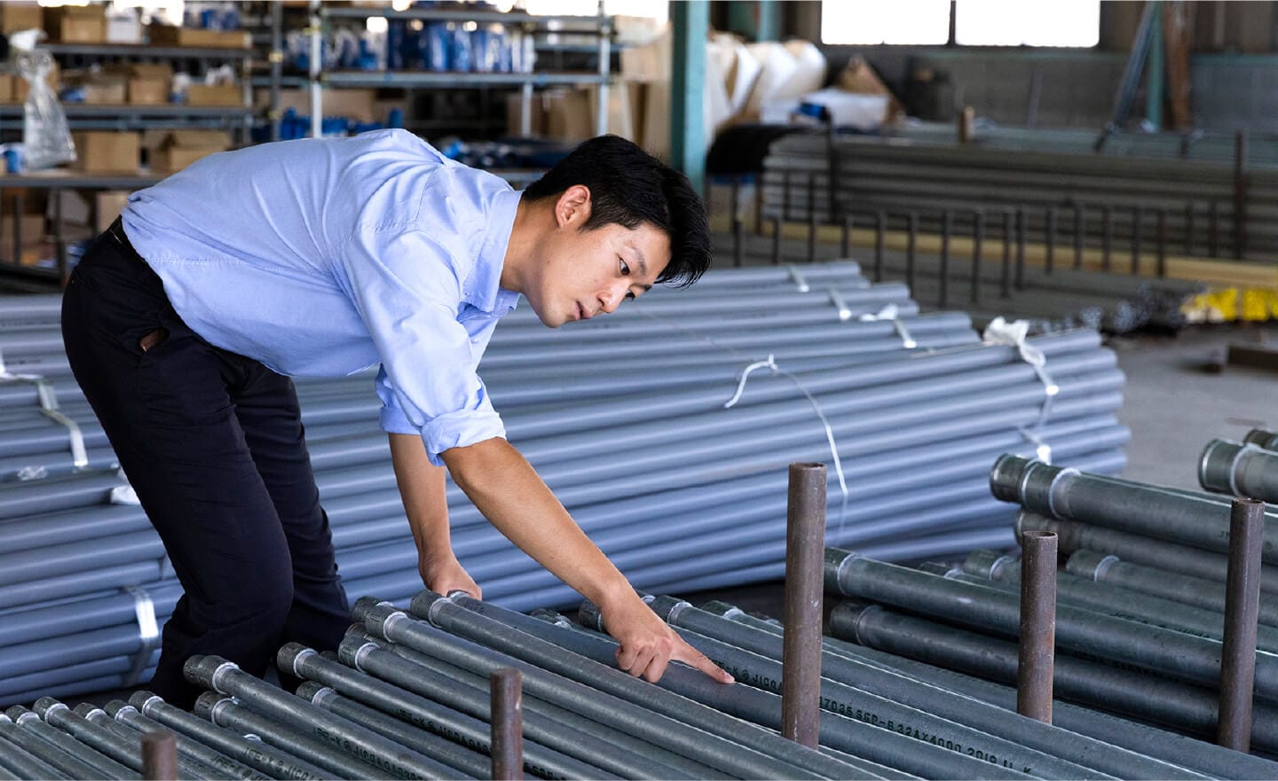 マルニシに足を踏み入れた彼は、管材部の一員となった。管材部が扱うのは例えば、水道管やポンプ、マンホールなどだ。地域のインフラに欠かせないアイテムである。彼の使命は、そうしたアイテムを必要とする建設会社や工務店などの要望に応え、人々の暮らしを支えることだ。これらのアイテムは多種多様であり、幅広い知識が必要となる。吉田はアシスタント時代から、マルニシと取引のあるクライアントに自主的に声をかけていった。「現場を見学させてください」。成長を遂げるため、彼はいつでも前のめりだった。時には、「邪魔するな!」と怒られることもあった。それでも吉田は食らいつく。そうして、いつの頃からか『期待のルーキー』と呼ばれるようになり、彼にはクライアントから直接、仕事の依頼が来ることが増えた。「期待に応えたい」という想いが、彼のチカラを高め、さらなる進化を促した。